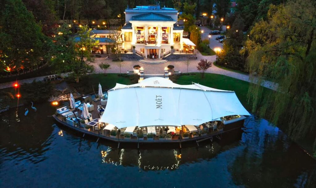 Praga is the largest restaurant in Kyiv, capable of hosting up to 500 guests. But its appeal lies beyond scale. It offers a park-like setting in the heart of the capital, a lakeside café pavilion, and even resident swans that have become part of the restaurant’s charm. Its cultural programming includes seasonal fairs, charity events, artistic evenings, and the iconic Flower Ball, which attracts thousands each year. Praga bridges the past and present, elegance and scale, city rhythm and countryside charm.
